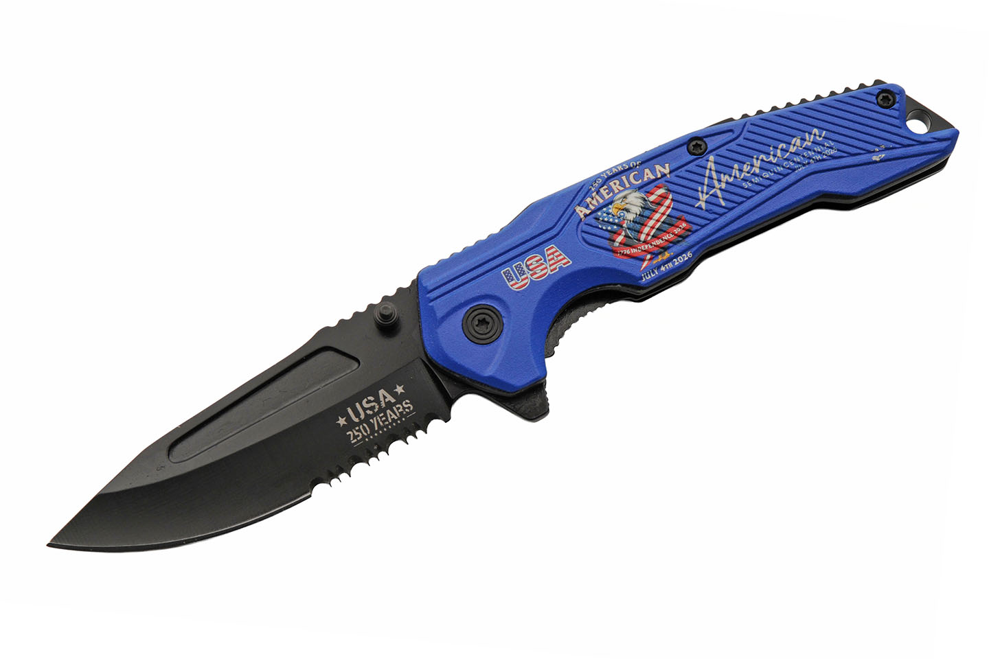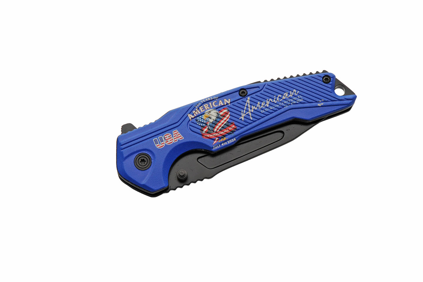 250th Anniversary Blue Folding Knife With Clip Aluminum Blade