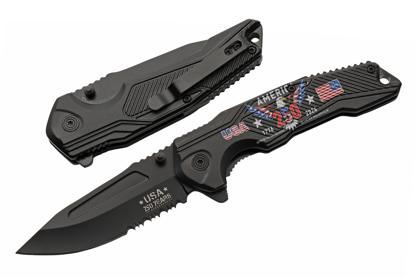 250th Anniversary Eagle Folding Knife With Clip Aluminum Blade