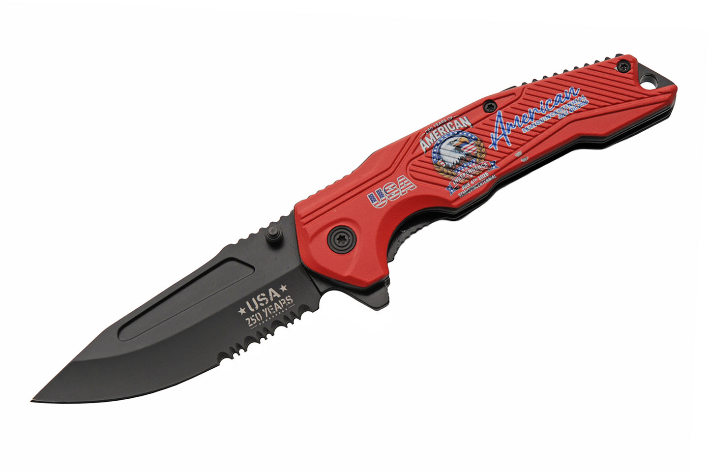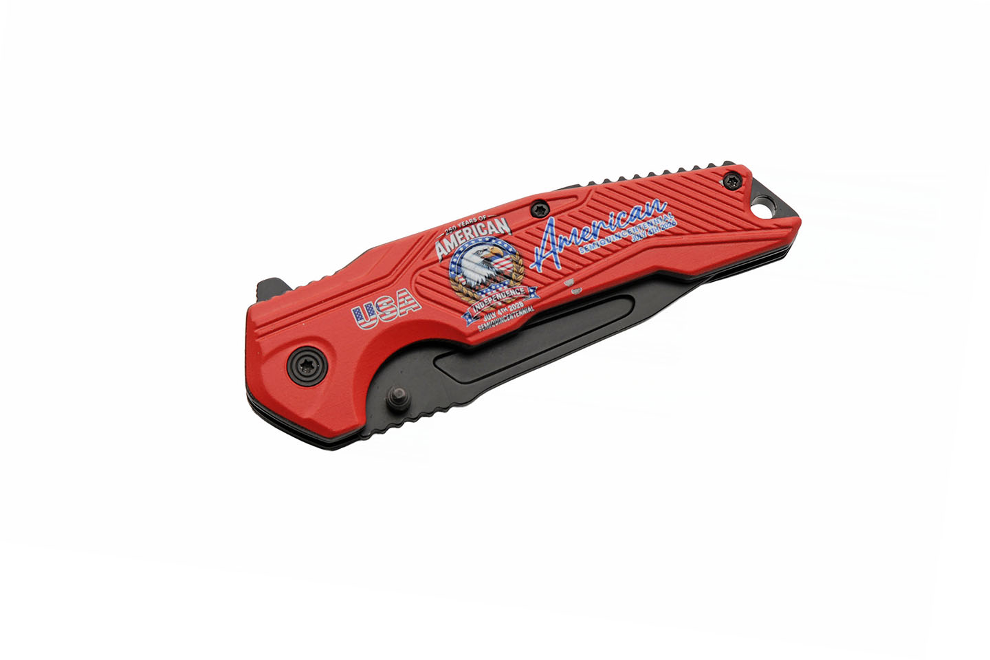 250th Anniversary Red Folding Knife With Clip Aluminum Blade
