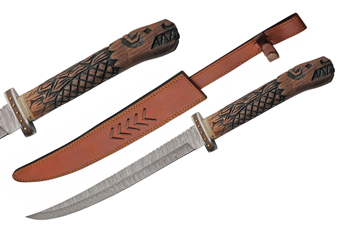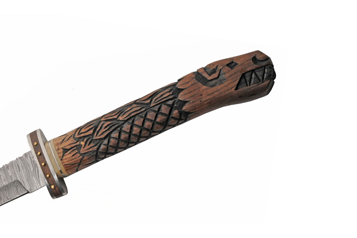 Handle: The carved 10-inch Ashwood handle offers a comfortable grip with unique craftsmanship.