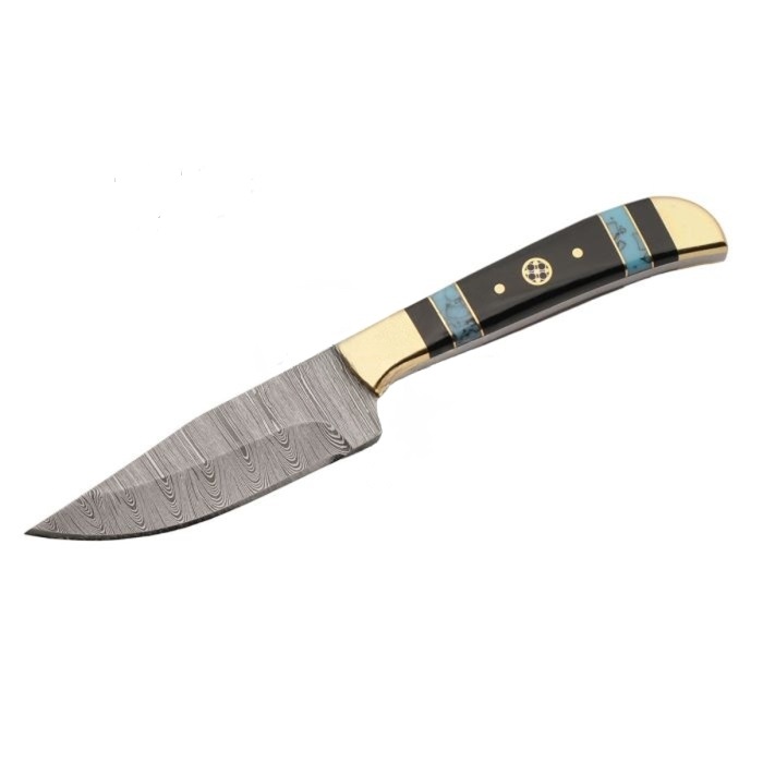 • Resin Handle with Style: The 4.25″ resin handle provides a smooth, comfortable grip with a durable feel, while turquoise and brass spacers add a striking decorative touch that makes the knife stand out in any collection.